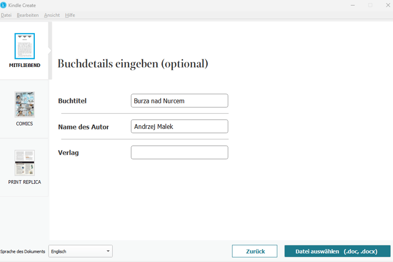 W Kindle Create nie ma języka polskiego.